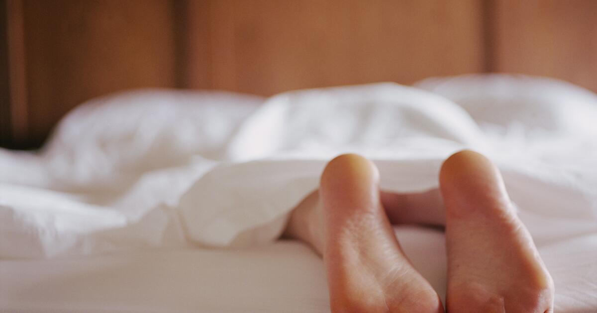 When your feet are hanging off the edge of the bed in an uncomfortable position the blood flow might be disturbed or slowed down. Then pull your knee toward your chest. Now take the knee of the leg to be stretched and pull it to the chest.
